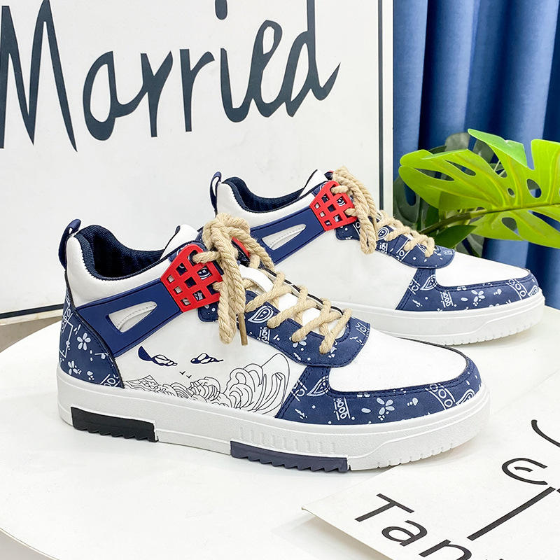 Zapatillas Deportivas Casuales de Primavera para Hombre Nbd, Estilo Baloncesto con Estampado, Punta Redonda Blanca, con Cordones, a la Moda, para Caminar