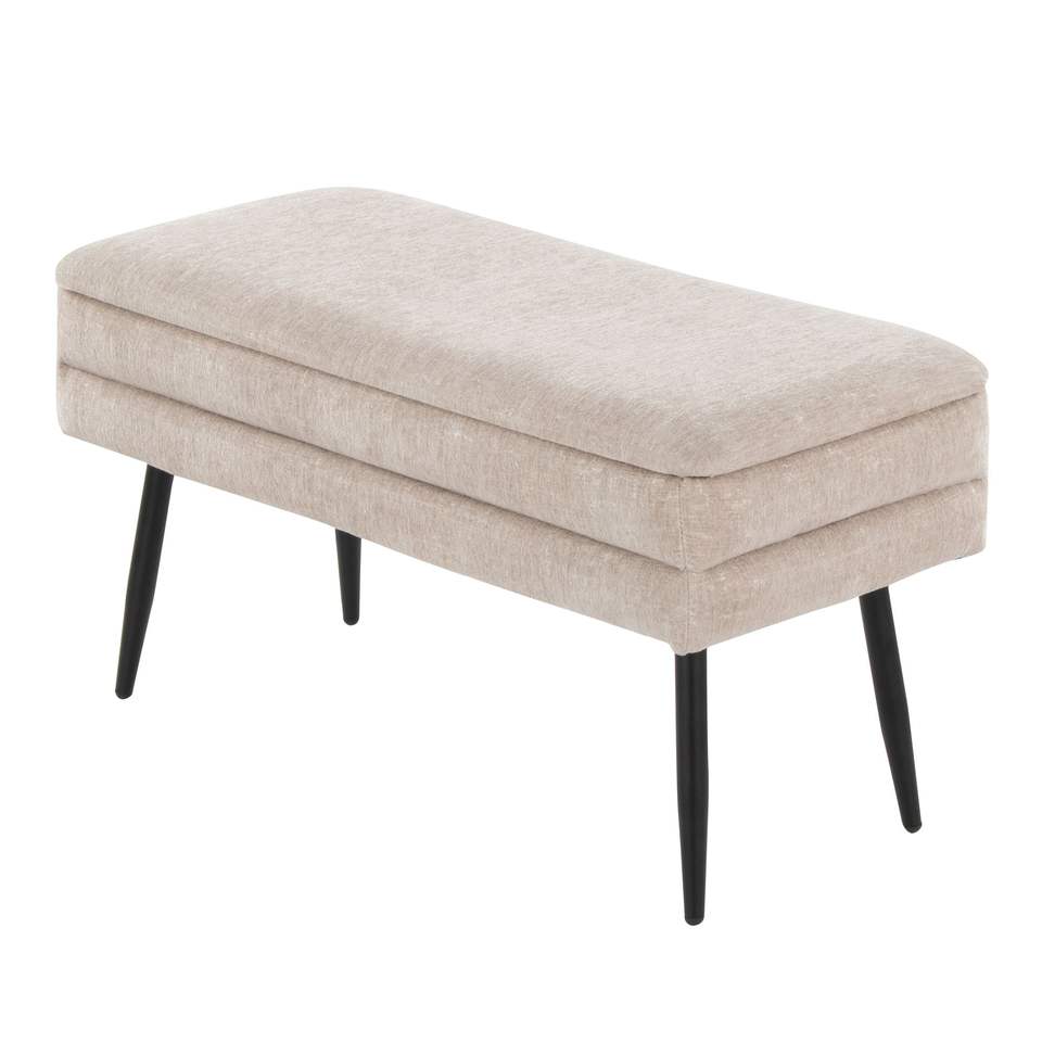 Banco de Almacenamiento Contemporáneo Napolitano, Metal Negro y Tela Marrón Claro, Modelo D0100H5TAZT