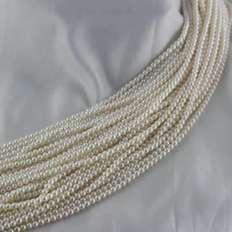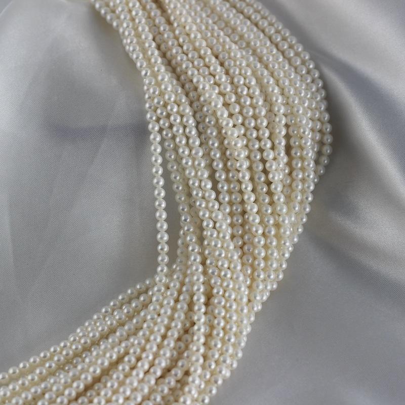 Collar de Perlas de Agua Dulce Casi Perfectamente Redondas, Cuentas Pequeñas de 3-4 mm, Producto Semiterminado