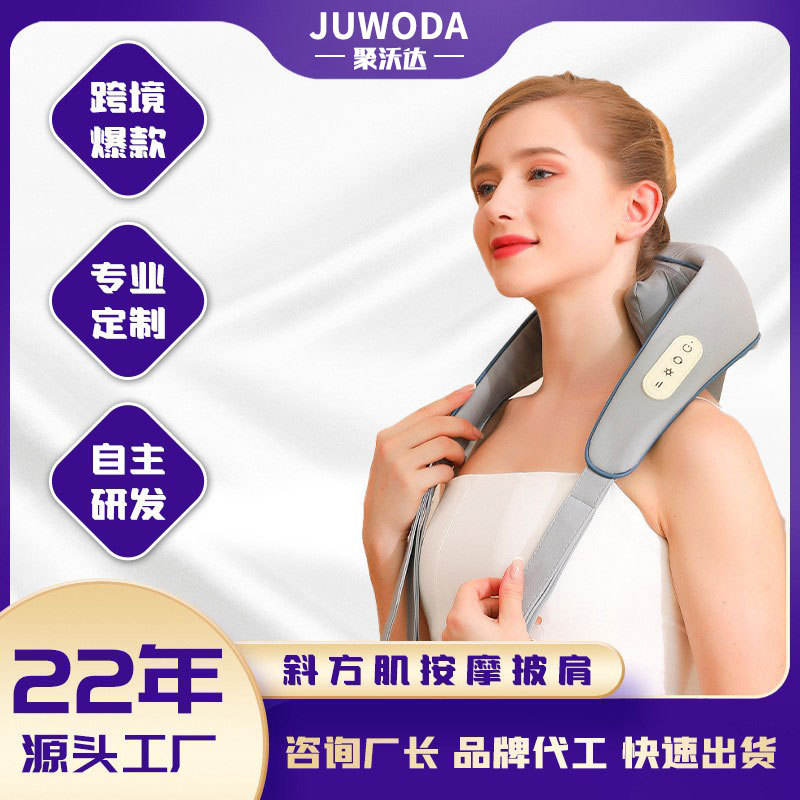 Masajeador de cuello y hombros con función de calentamiento, recargable, alimentado por USB, color gris y blanco roto