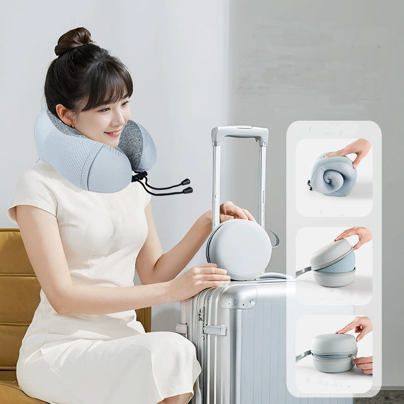 Almohada ergonómica de soporte para el cuello de viaje de espuma viscoelástica en forma de U portátil para vuelos y viajes por carretera de larga distancia
