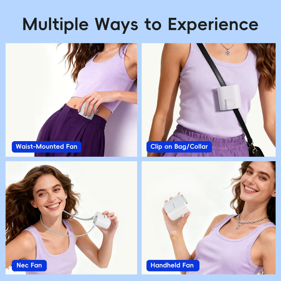 Ventilador de Cuello Recargable con Batería de 2000 mAh, Pantalla LED, Control por Botones, Portátil, Multifunción, 3 Velocidades, USB, para Exteriores y Hoteles