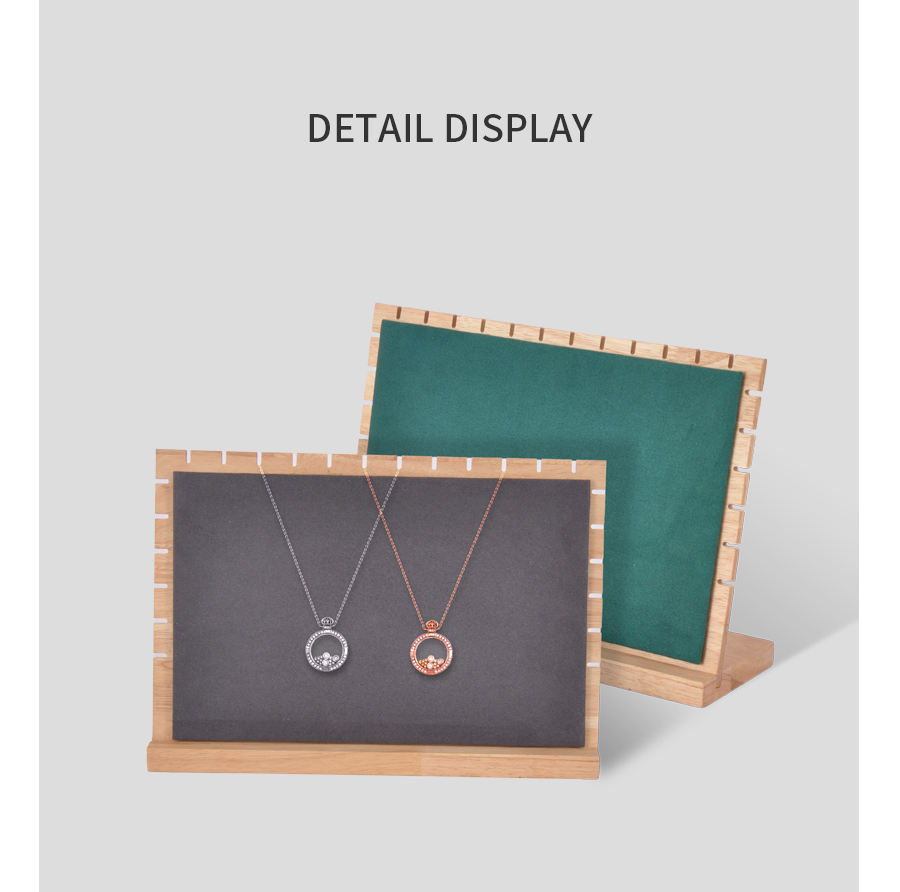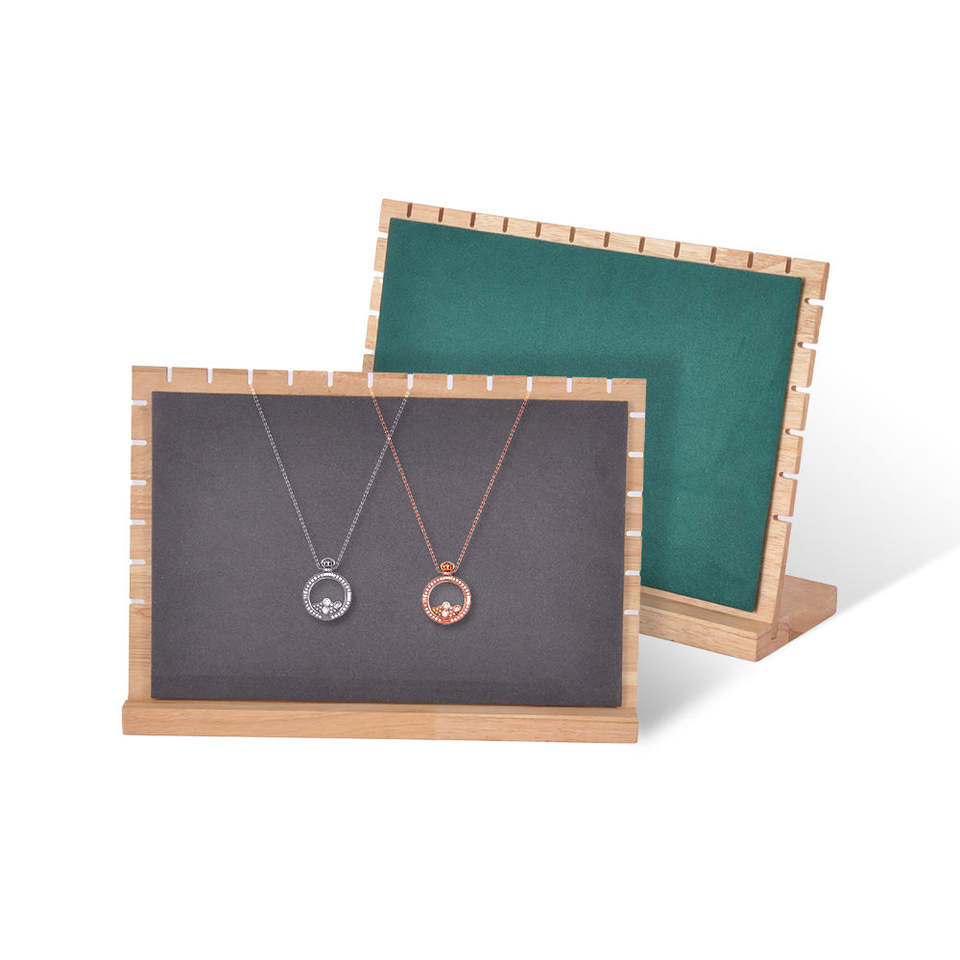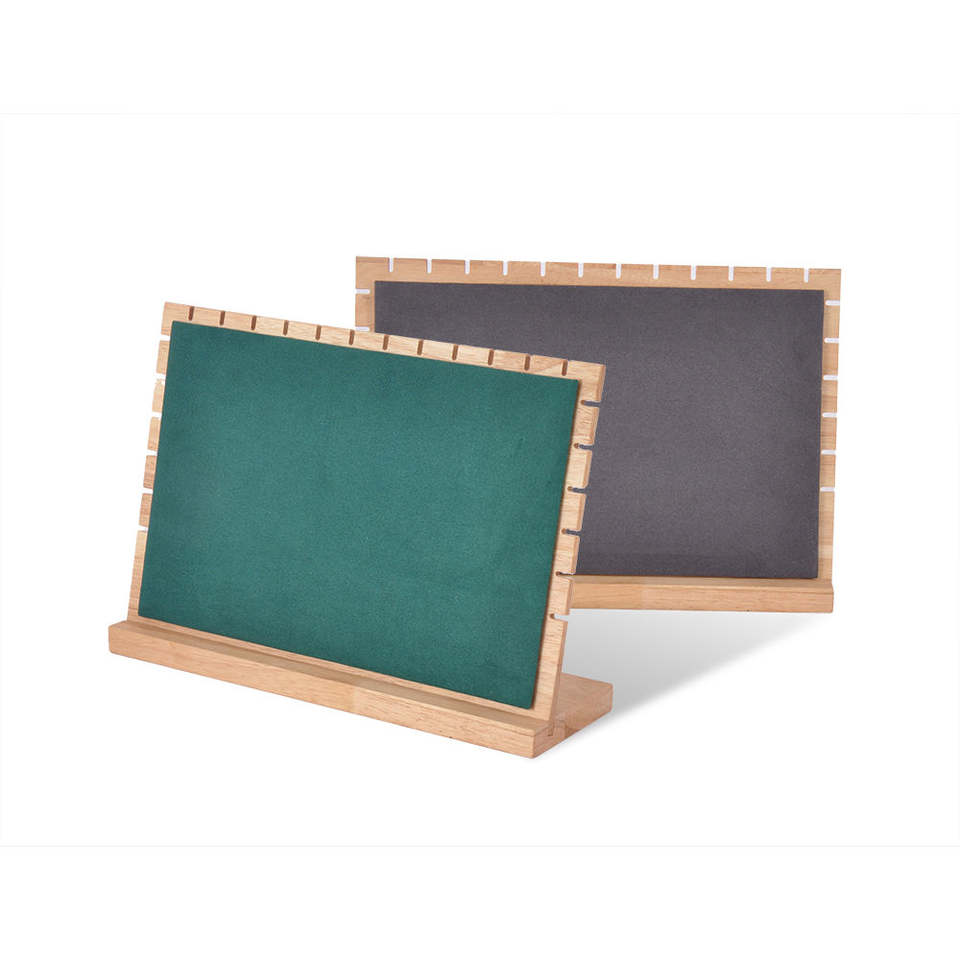 Expositor de collares y pulseras con marco de madera de bambú para venta en puestos