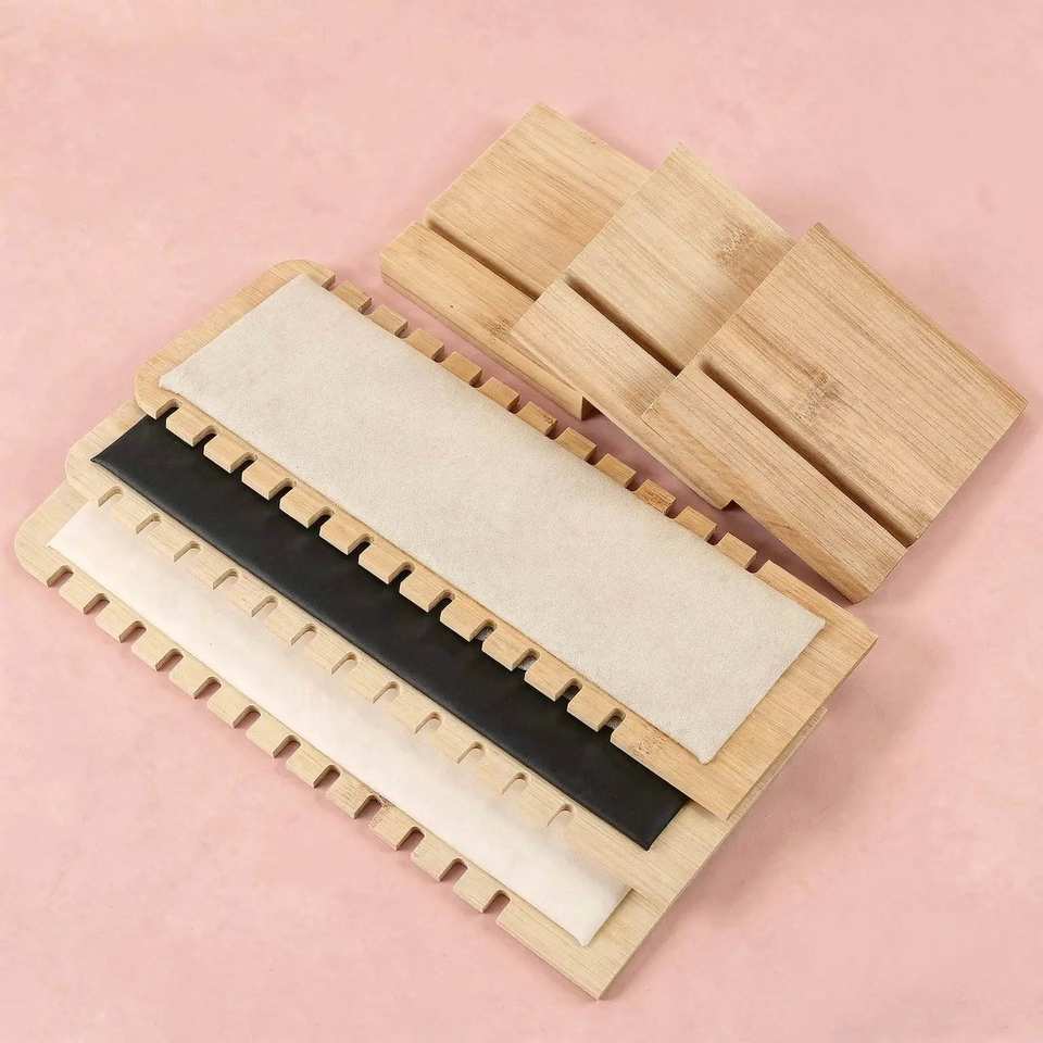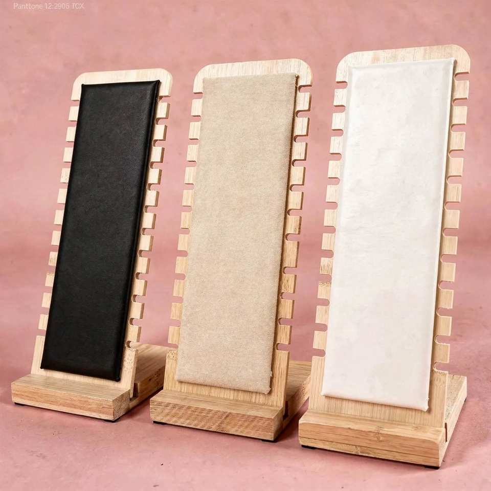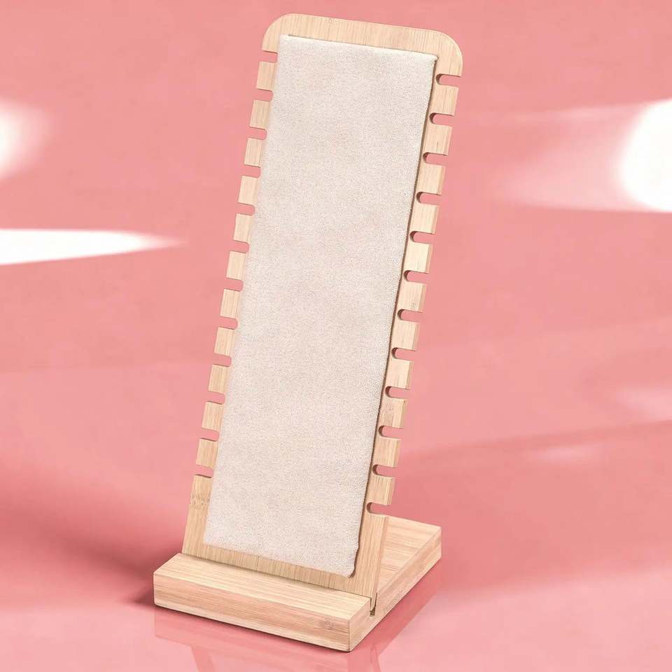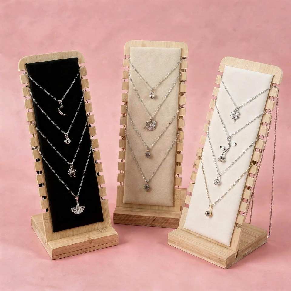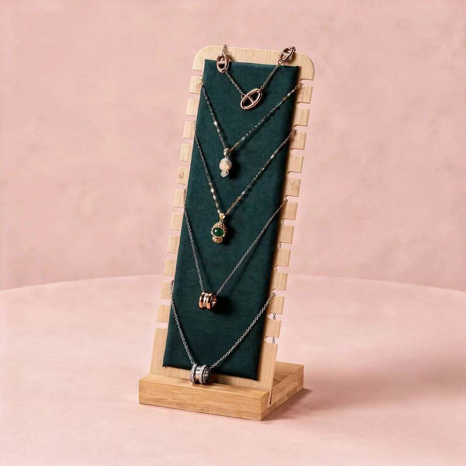 Expositor de Collares de Terciopelo Verde Beige, Soporte de Bambú para Colgar Joyas, Tablero de Exhibición