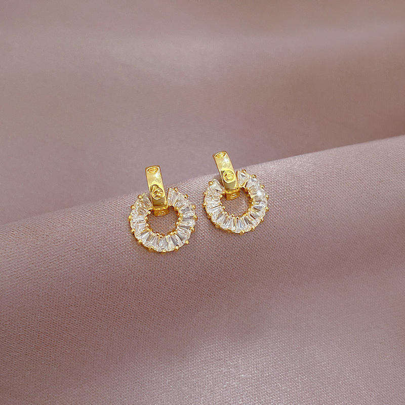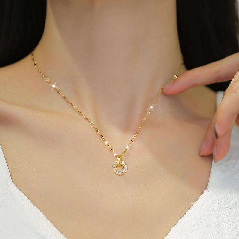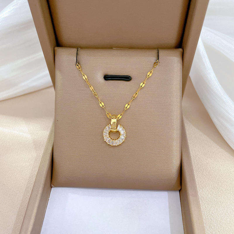 Conjunto de Collar y Pendientes de Acero Inoxidable y Titanio para Mujer, Joyería de Aro con Diamantes, Dos Piezas, Elegante, Moderno y de Lujo