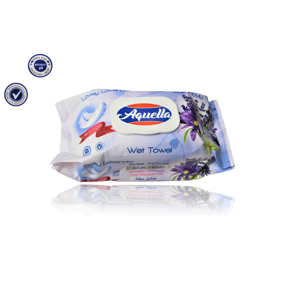 Nedves Törlökendő Aquella 100 Db P.H. 5,5 Levendula Illattal Fliptop Zárókupakos