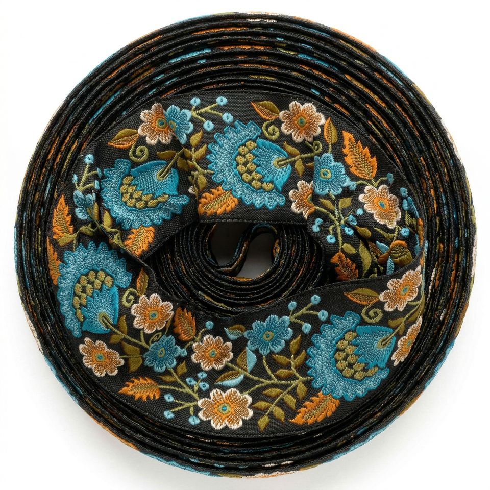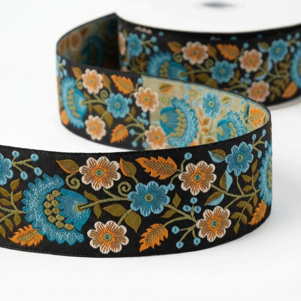 Cinta Bordada Multicolor de 50 mm de Neelkamal Industries con Diseño Floral para Diseño de Prendas, Manualidades y Decoración
