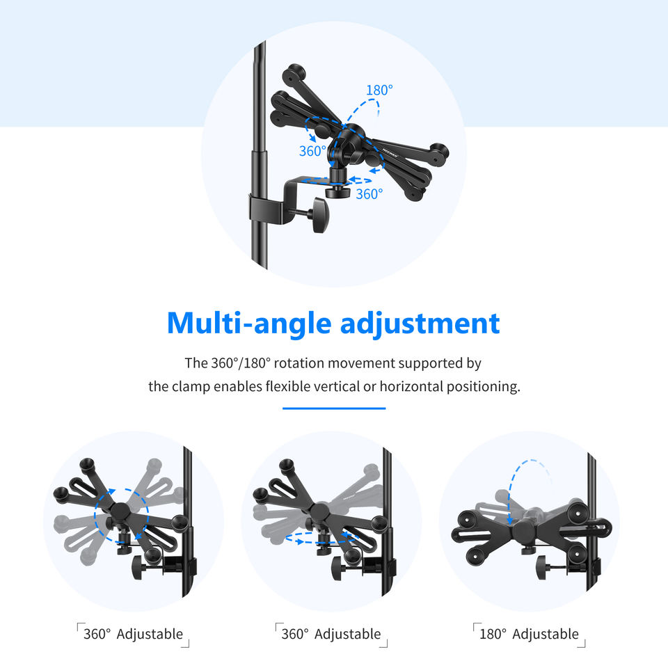 Soporte ajustable para tableta Neewer de 7-14 pulgadas y abrazadera giratoria de 360 grados para soporte de micrófono, iPad, iPad Pro, iPad Air, Google