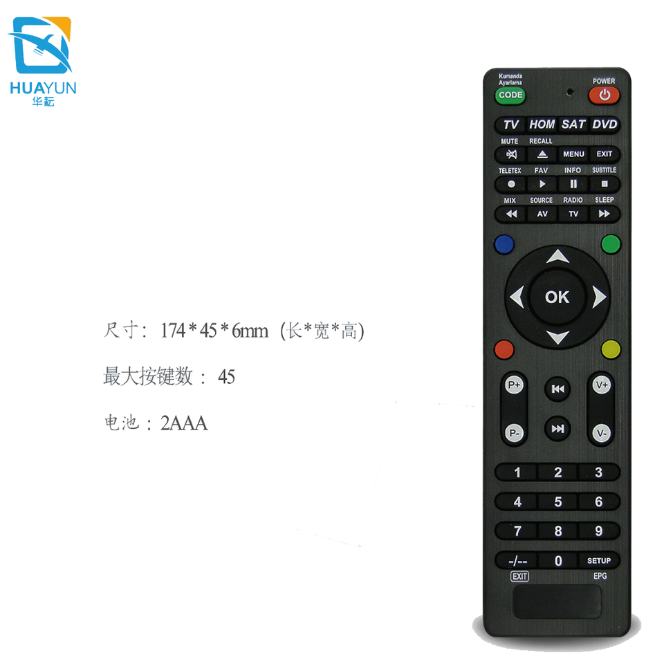 Negro LCD LED control remoto para TV a Rusia mercado 2AAA batería de control remoto