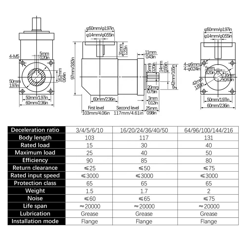 Nombre del producto:PXW60 Reductor planetario de ángulo recto