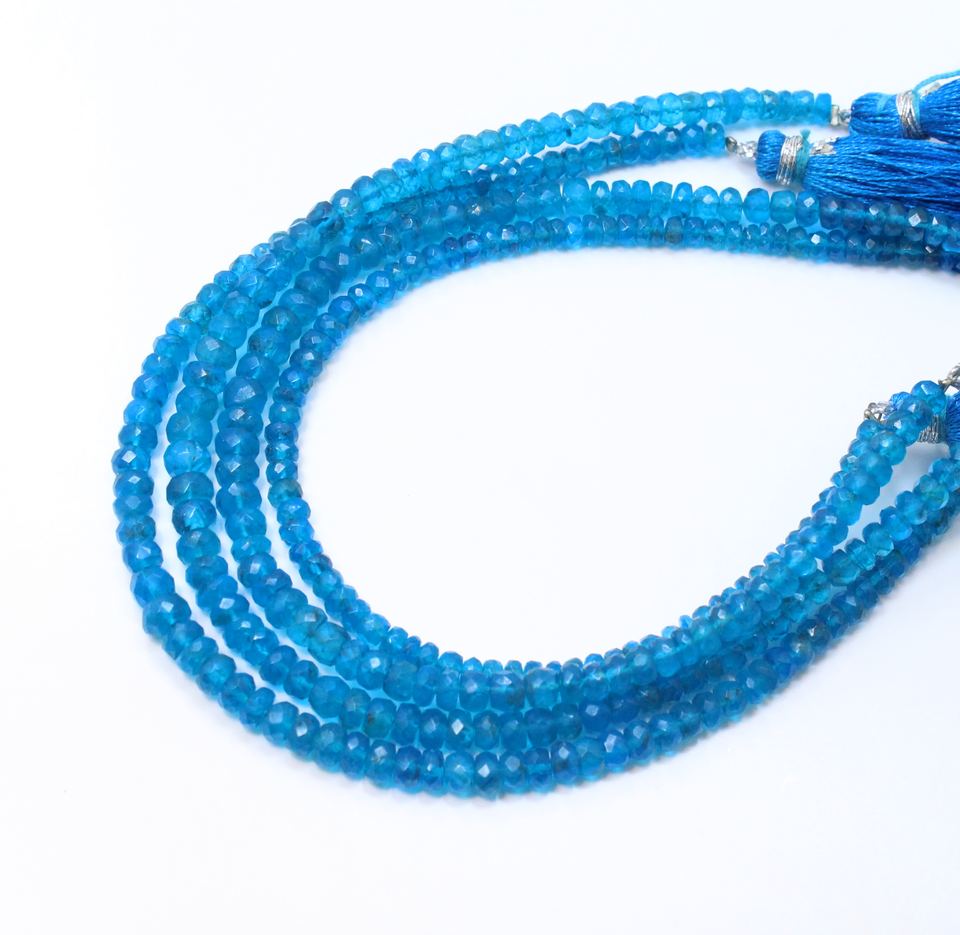 Cuentas facetadas de apatita de neón, cuentas redondas, cuentas de piedras preciosas naturales, el tamaño de 4mm de longitud es de 8 pulgadas