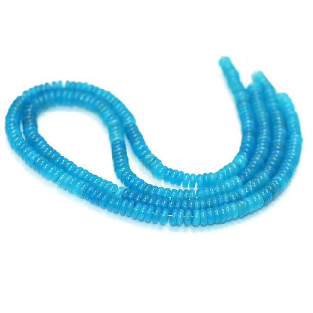 Cuentas de Calcedonia Azul Neón Bio en Forma de Rondelle Plana | Cuentas de Piedras Preciosas Azul Neón | Cuentas Redondas Lisas | Suministros para la Fabricación de Joyería
