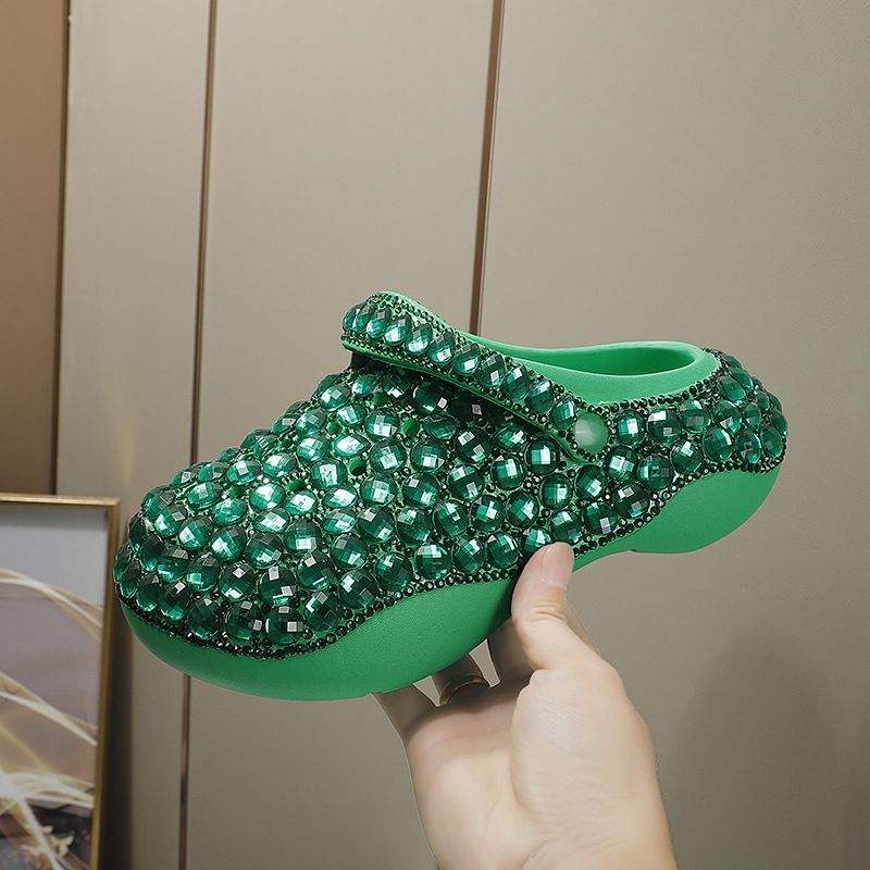 Sandalias Planas con diamantes de imitación de neón, suela gruesa, plataforma para exteriores y hogar, zapatos Sepatu 2025, zapatillas