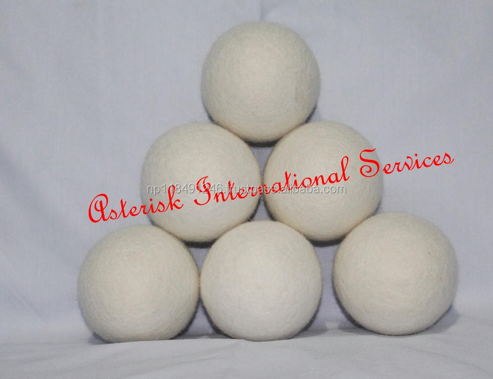Bola secadora de fieltro blanco ecológica hecha en Nepal, lana de fieltro a mano para secado de suavizante de telas naturales para lavandería
