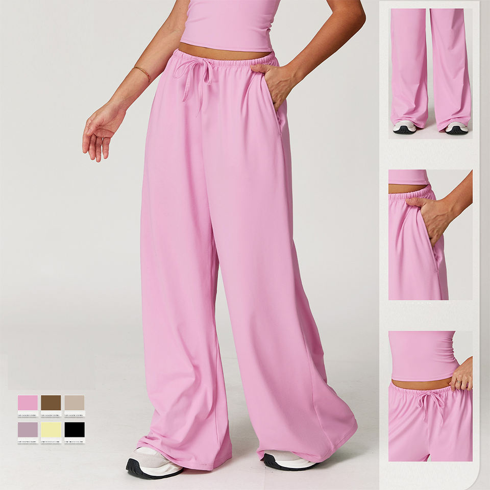 Pantalones Largos de Poliéster con Diseño Nes, Pantalones Casuales Holgados de Pierna Ancha con Cintura Elástica y Cordón para Mujer, para Ejercicio y Fitness