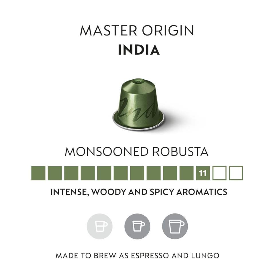 Cápsulas Nespresso Línea Original, India Master Origin, Café Tostado Oscuro, 50 Cápsulas