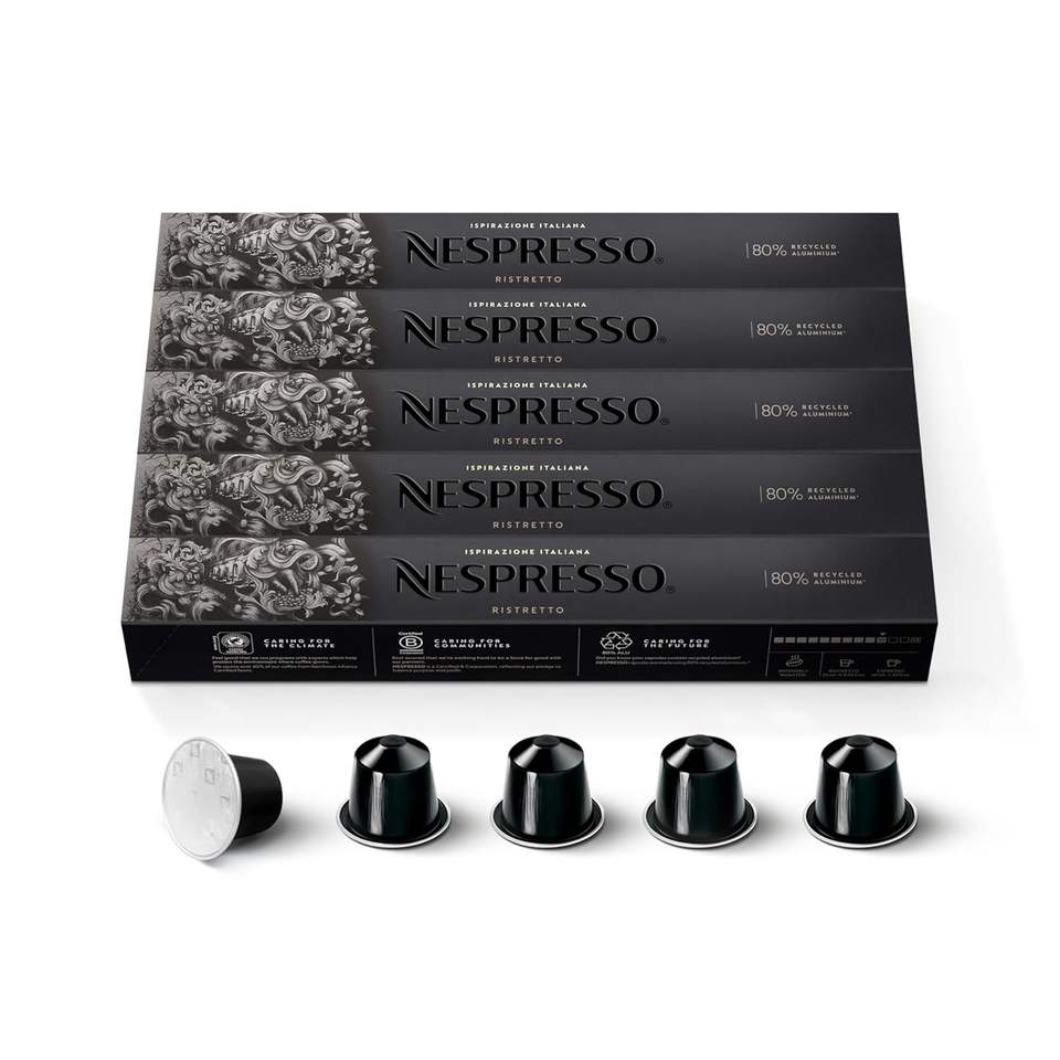 Cápsulas Nespresso Línea Original, Ristretto Descafeinado, Café Tostado Oscuro, 50 Cápsulas