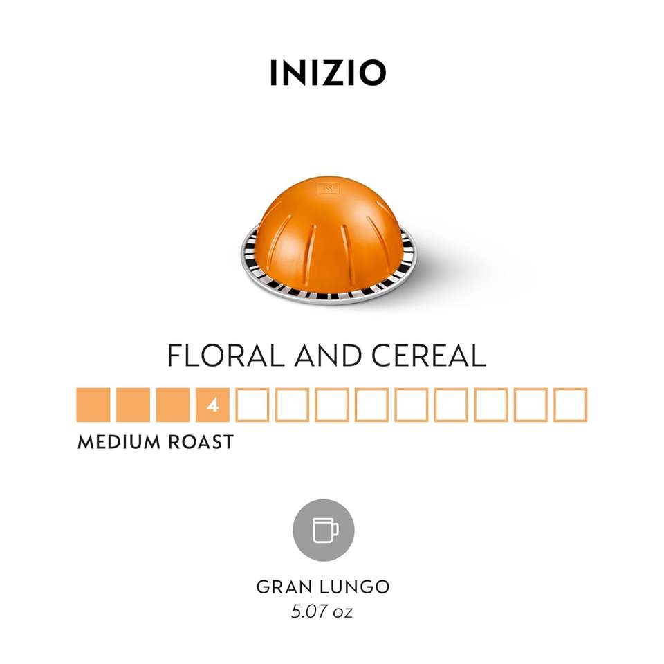 Cápsulas Nespresso Vertuo, Inizio, Café de Tueste Medio, 30 Cápsulas de Café, Prepara 5.0oz