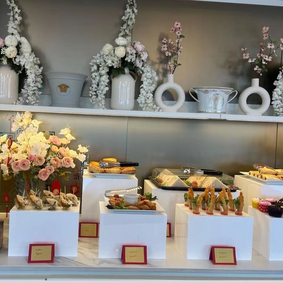 Elevadores de acrílico para buffet de catering