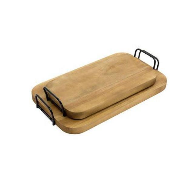 Bandeja de madera anidada con asas de metal, exhibición para servir té y café, forma Rectangular para el hogar, Hotel y restaurantes