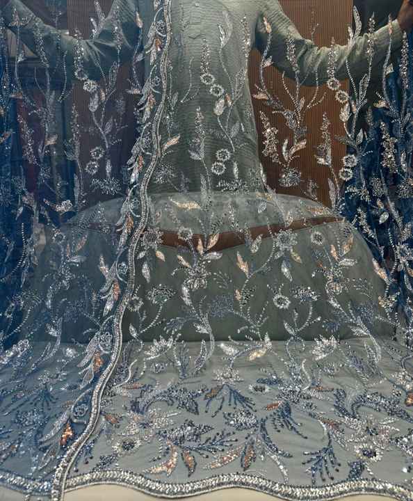 Tela de red con bordado floral de diseño para lehenga nupcial. Ideal para la confección de vestidos para ocasiones de boda. Compre directamente del proveedor.