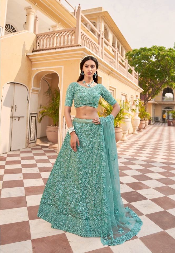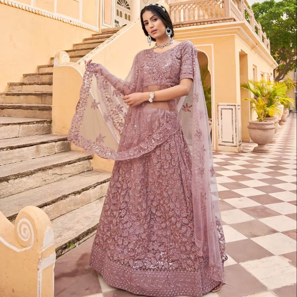 Lehenga Choli Moderno Semisellado de Longitud Completa con Bordado y Lentejuelas para Mujer - Ideal para Fiestas y Bodas