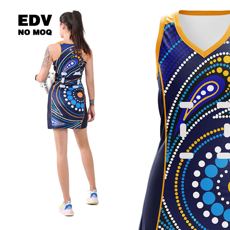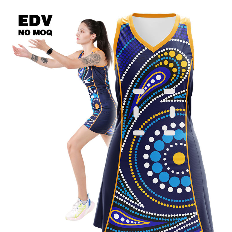Conjunto de Ropa de Netball, Uniforme de Equipo, Vestido y Pantalones Cortos con Patrones Sublimados, Tela de Alto Rendimiento para Ligas y Torneos