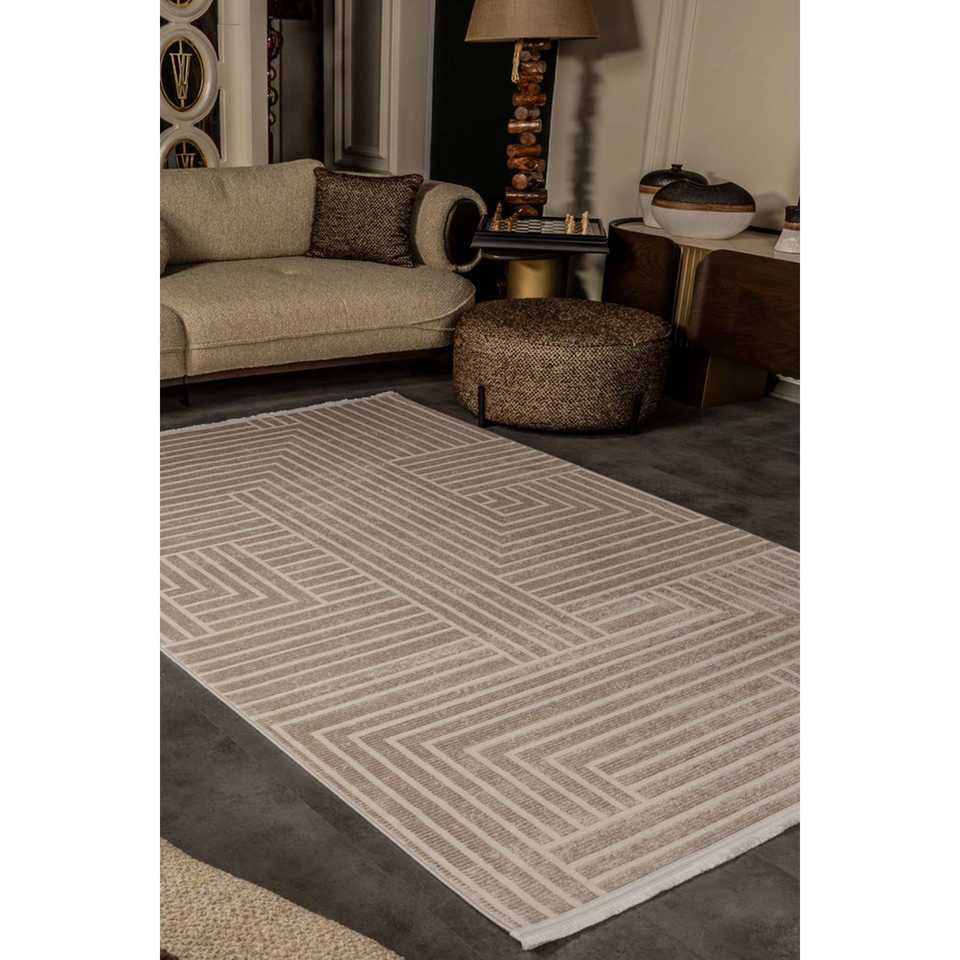 Alfombra Moderna Beige Netline CN016, 100% Acrílica, No Desprende Pelusa, Fácil de Limpiar, Duradera, para Dormitorio, Estudio, Niños - Home Depot