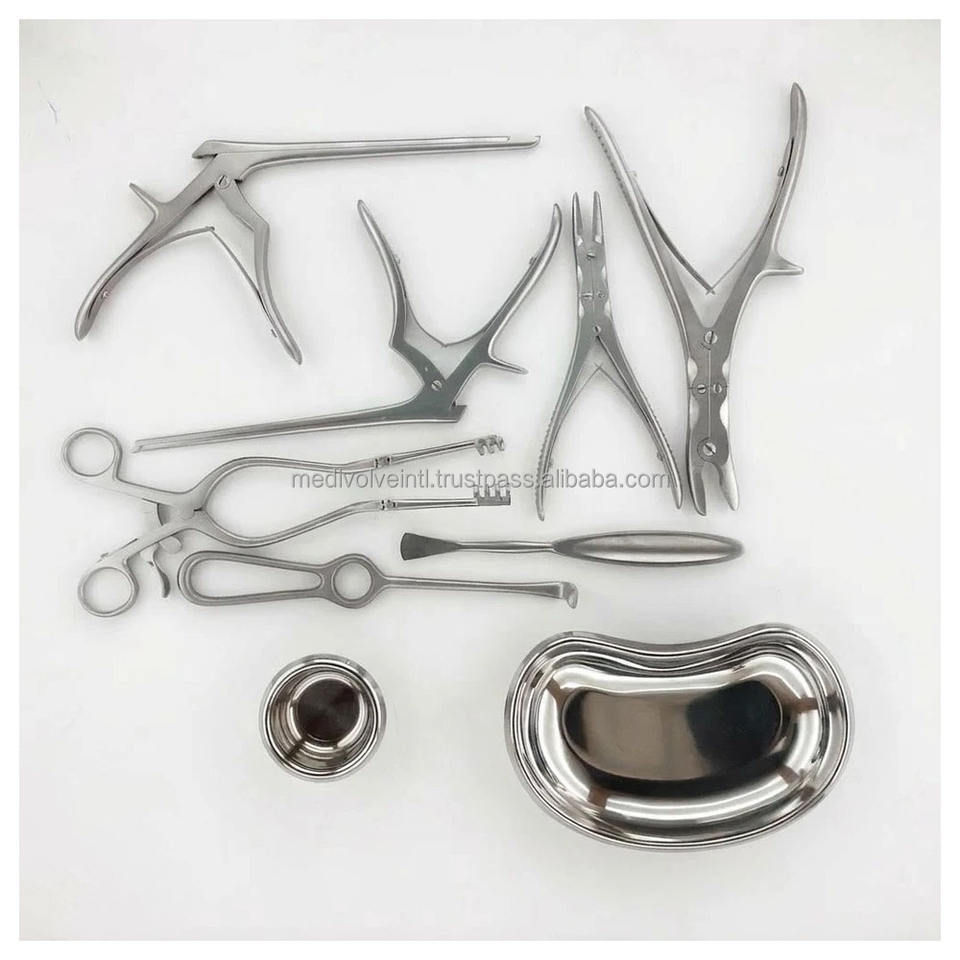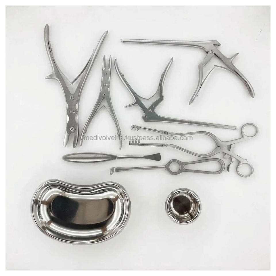 Juego de 10 instrumentos para cirugía de columna, herramientas neuroquirúrgicas ortopédicas con caja, kit de cirugía de columna de acero inoxidable, juego de instrumentos Kerrison Rongeur, kit de instrumentos ortopédicos para columna.