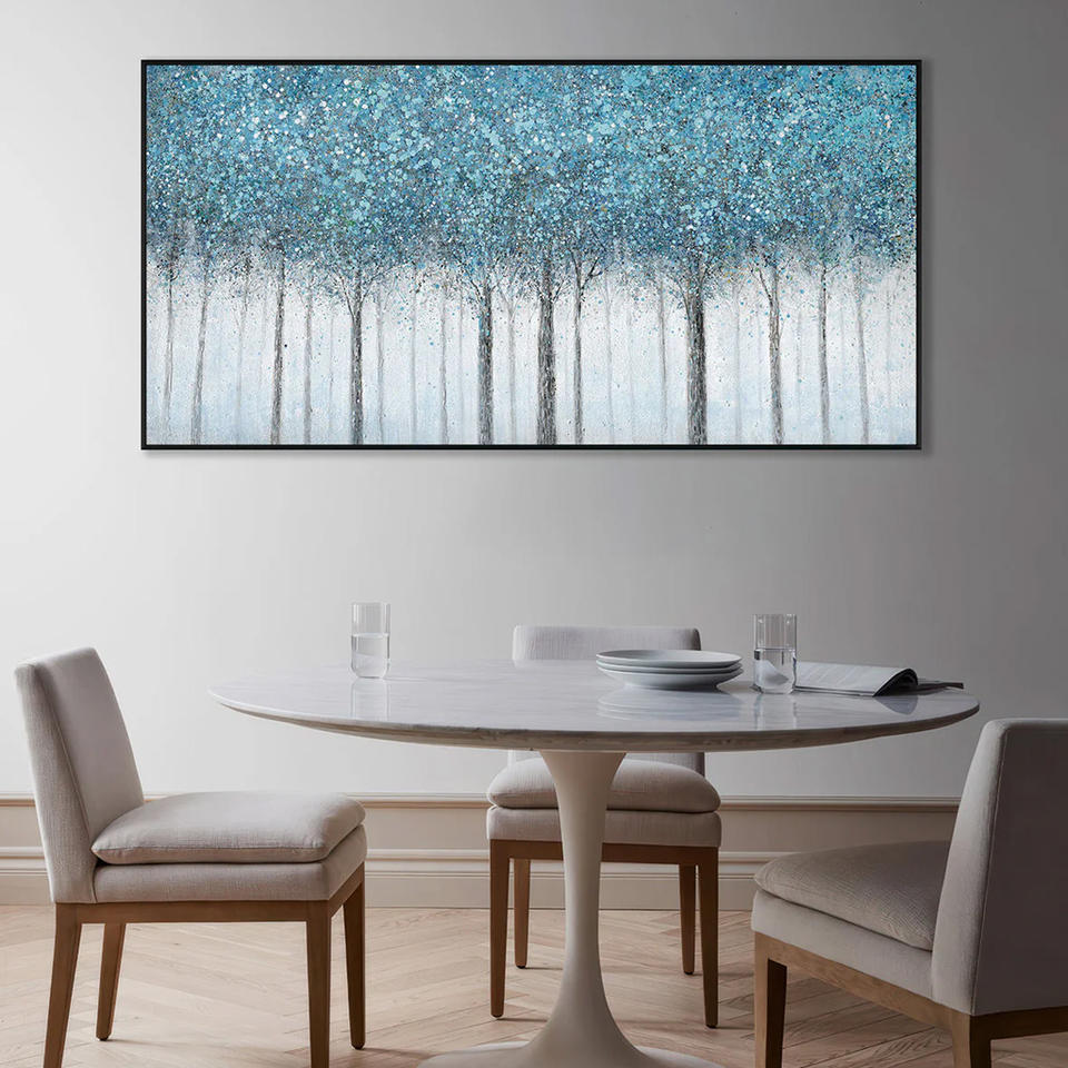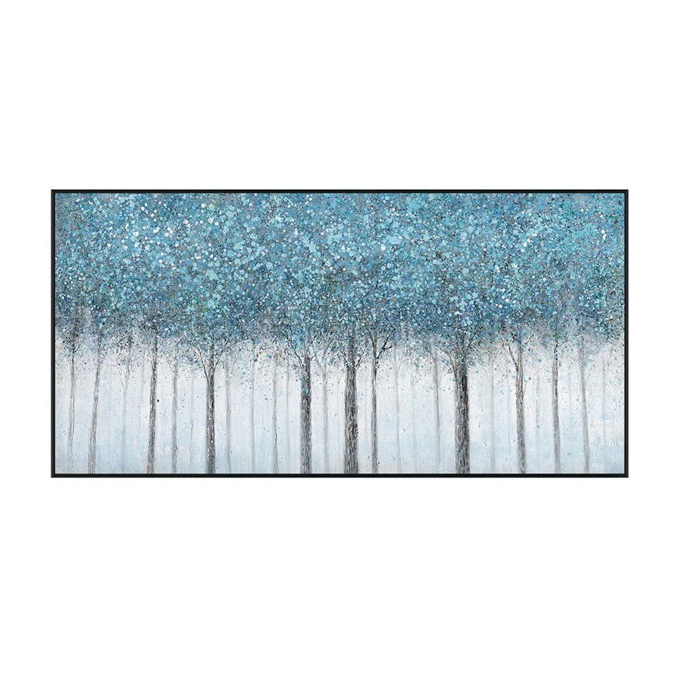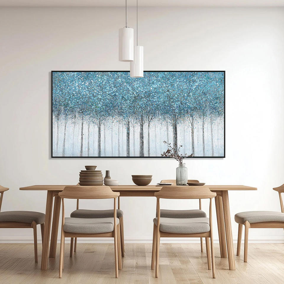Pintura al Óleo Abstracta Contemporánea de Bosque Azul Neutro, Pintada a Mano sobre Lienzo, Arte Decorativo Texturizado para Colgar en la Pared, Decoración del Hogar