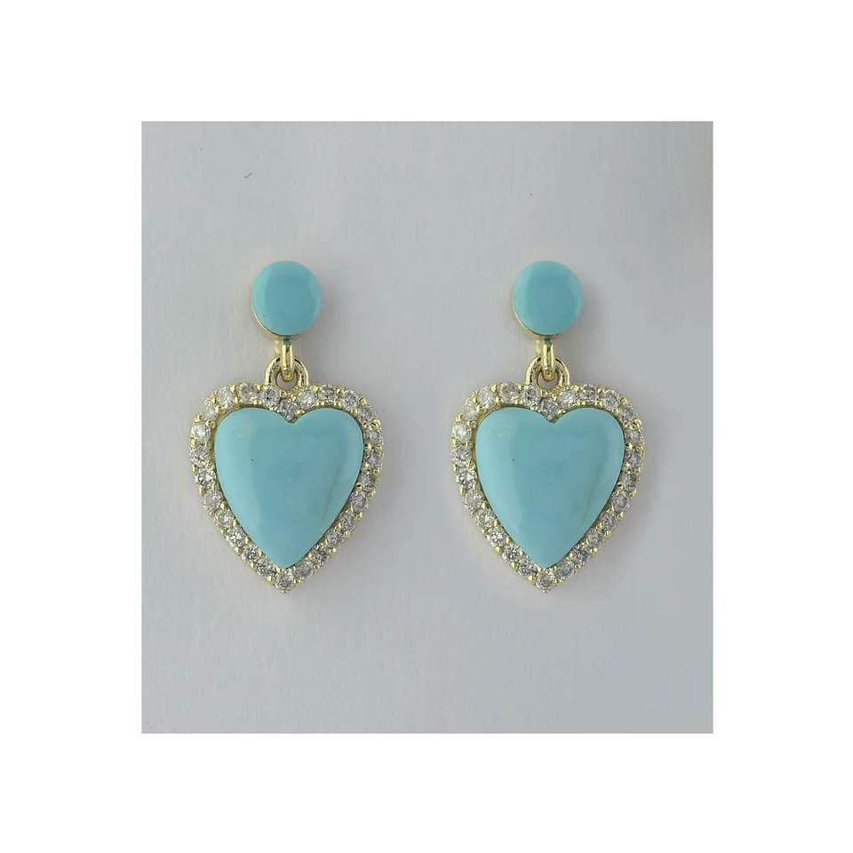 Nuevos pendientes en forma de corazón de oro sólido de 18 quilates Diamante turquesa natural Diseño de gota de corazón de moda para fiesta de boda para mujer
