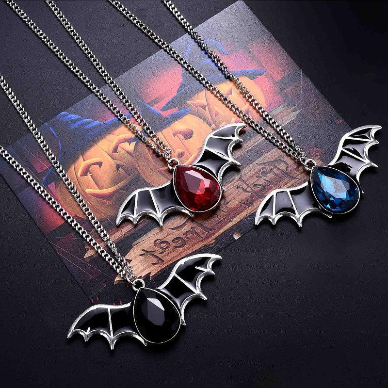 Collar Retro Tricolor de Murciélago para Halloween, Collar Decorativo de Una Pieza con Gota de Aceite de Piedras Preciosas, Prunus Persica, 1 Unidad