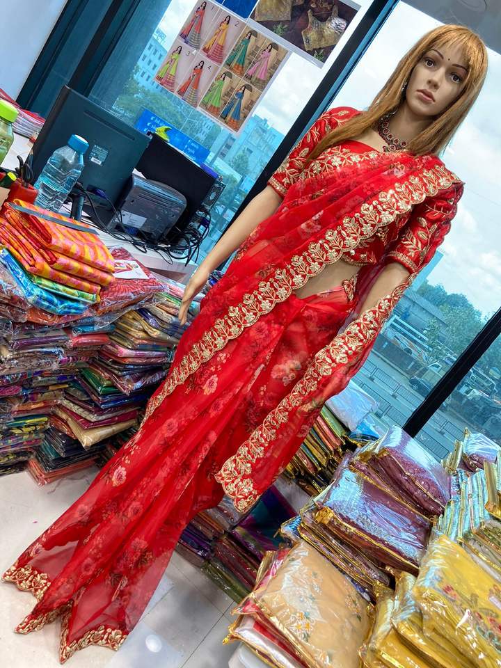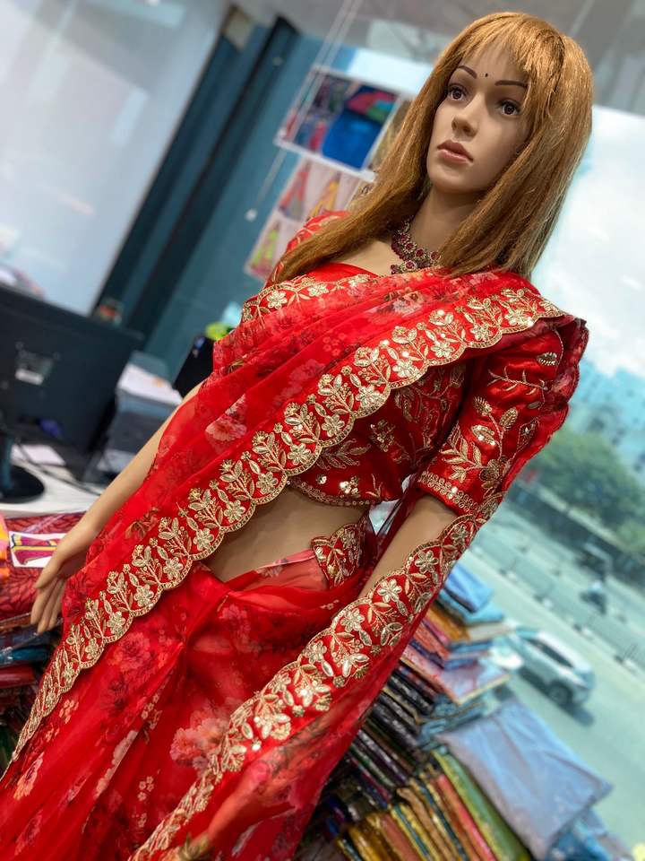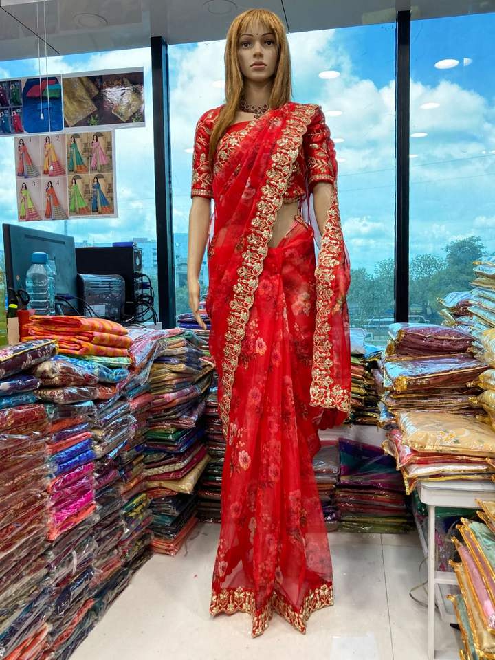Tipo:Organza de color rojo impreso desgaste del partido Saree