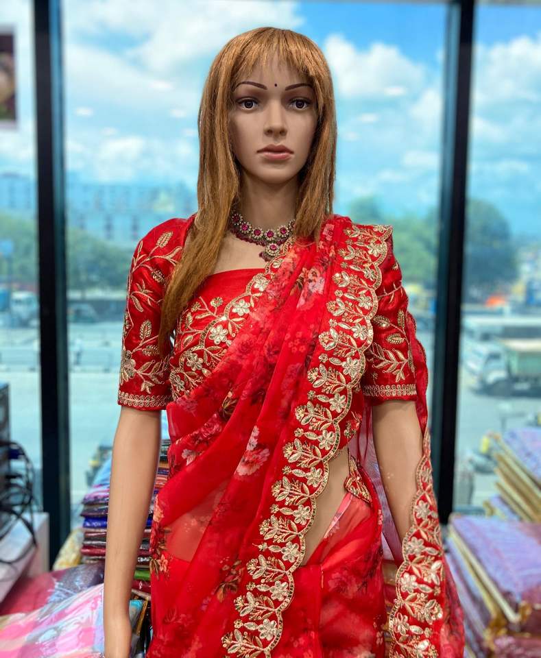 Trabajo:Impreso Saree con bordado trabajo blusa