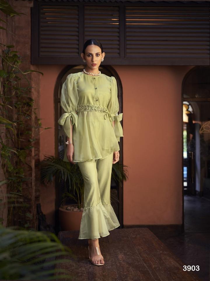 Nombre del producto:Pure Viscose Organza Co Ord Set con trabajo a mano