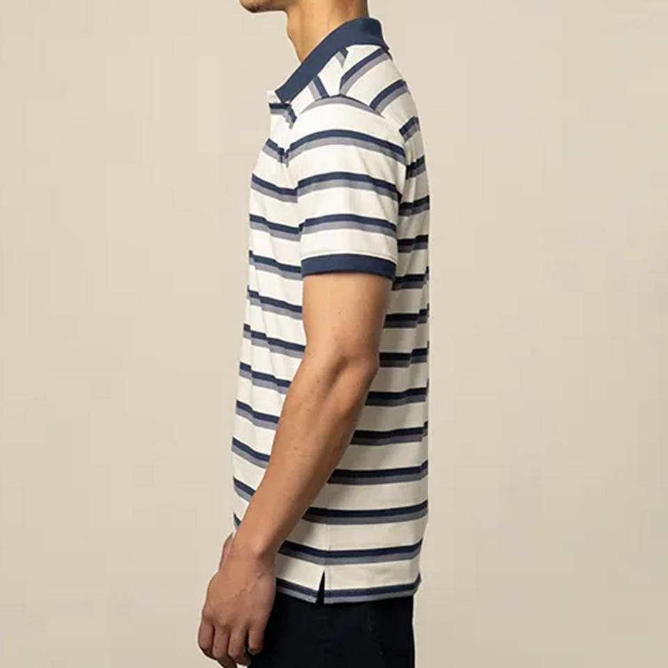 Nuevo 2023 Top moda buena calidad logotipo personalizado transpirable ajustado hombres al aire libre rayas manga corta tejido antiarrugas bolsillo