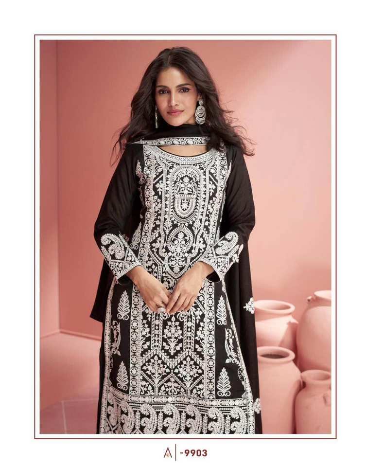 Nombre del producto:Traje Salwar de seda premium y Dupatta con trabajo de bordado