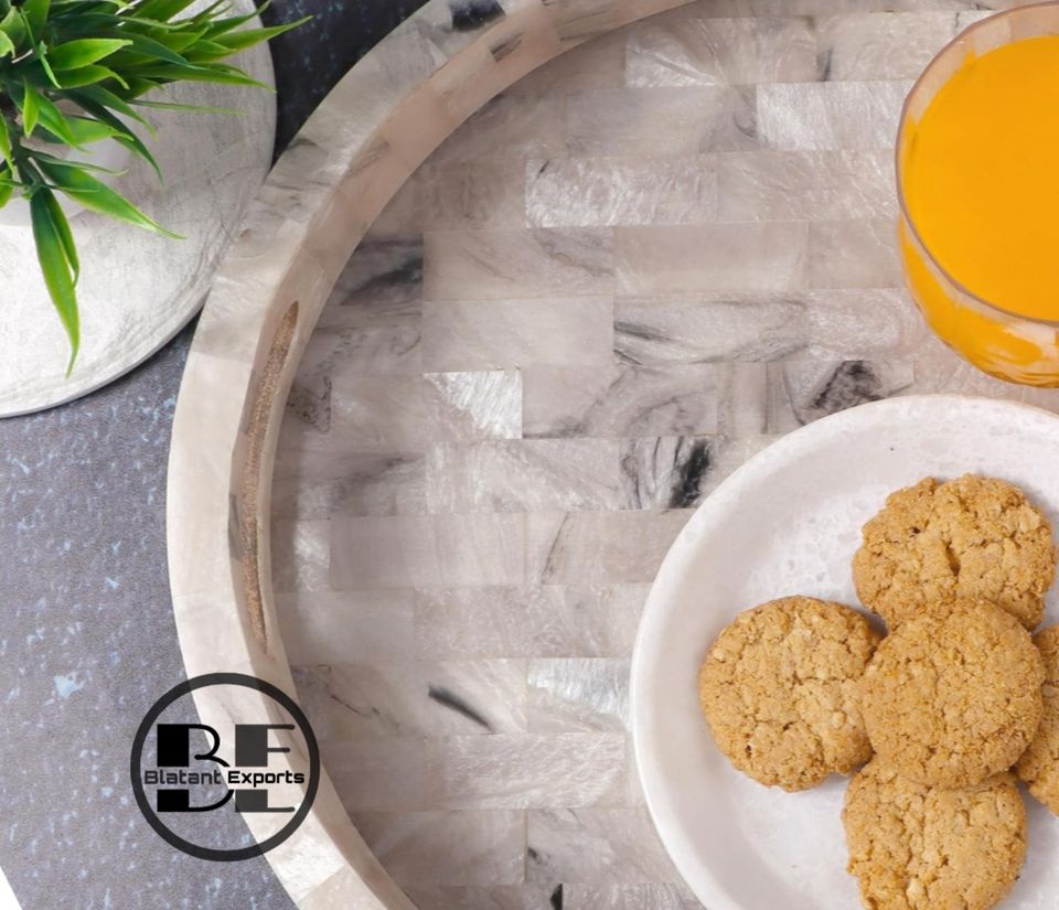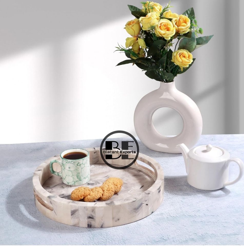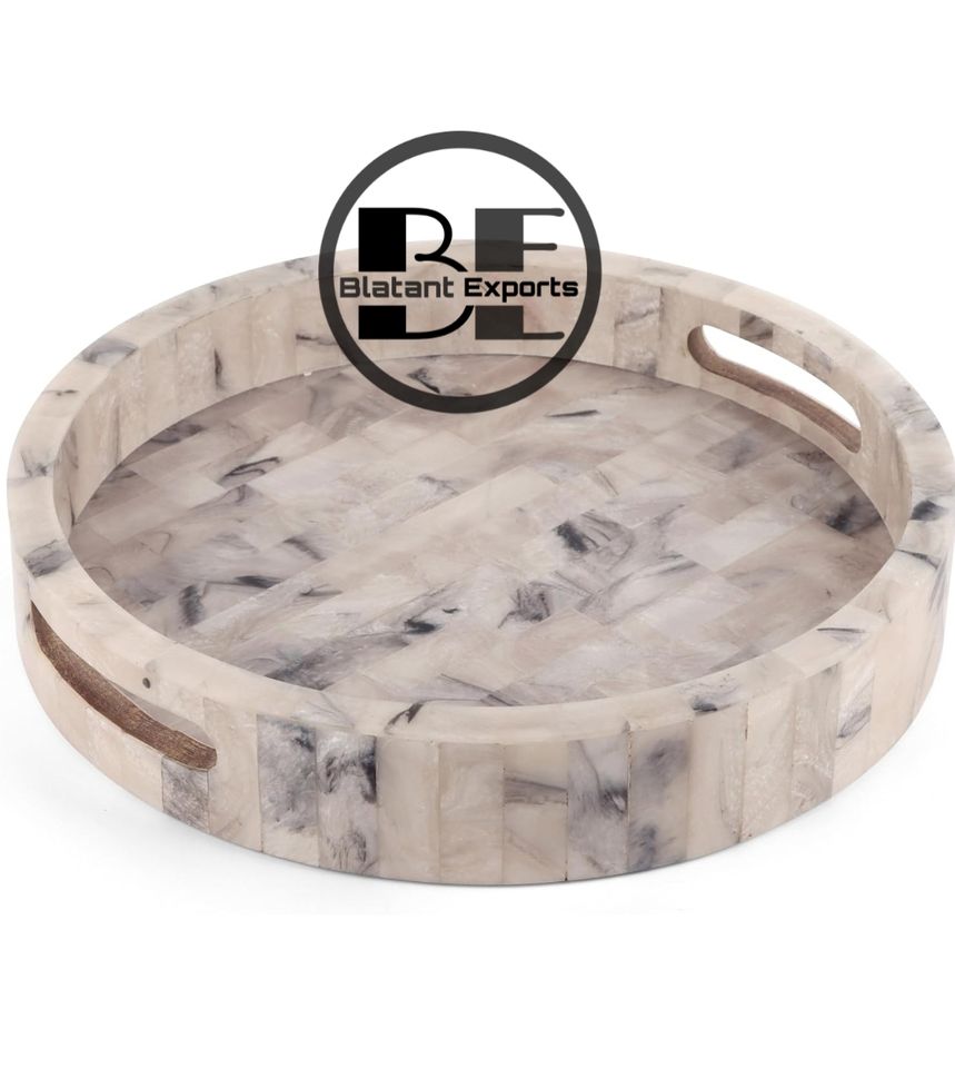 Bandeja con incrustaciones de hueso 2025, bandeja redonda para servir, plato de diseño Floral epoxi, bandeja con incrustaciones de resina, fabricante de India