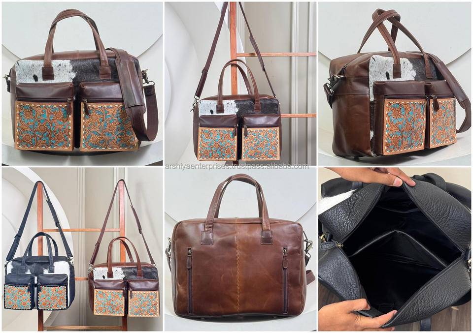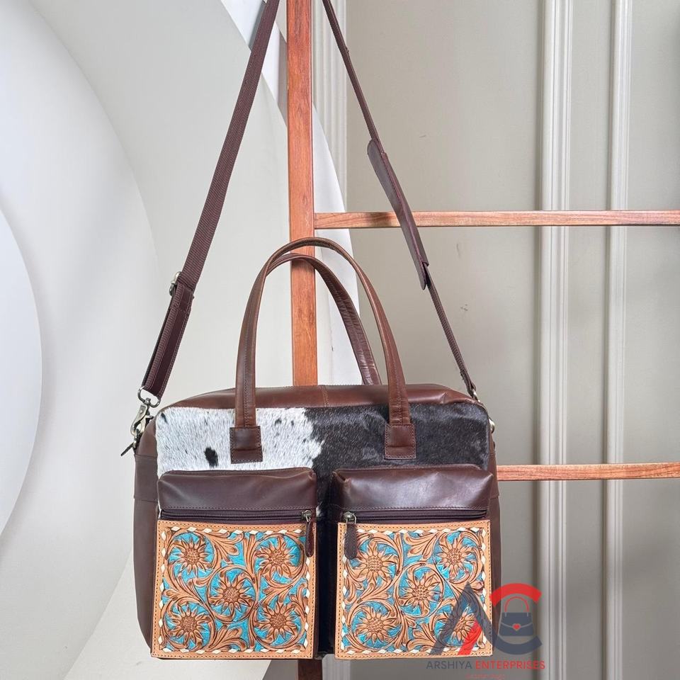 Hand Tooled Leather Multifunctional Baby Nappy Bag
