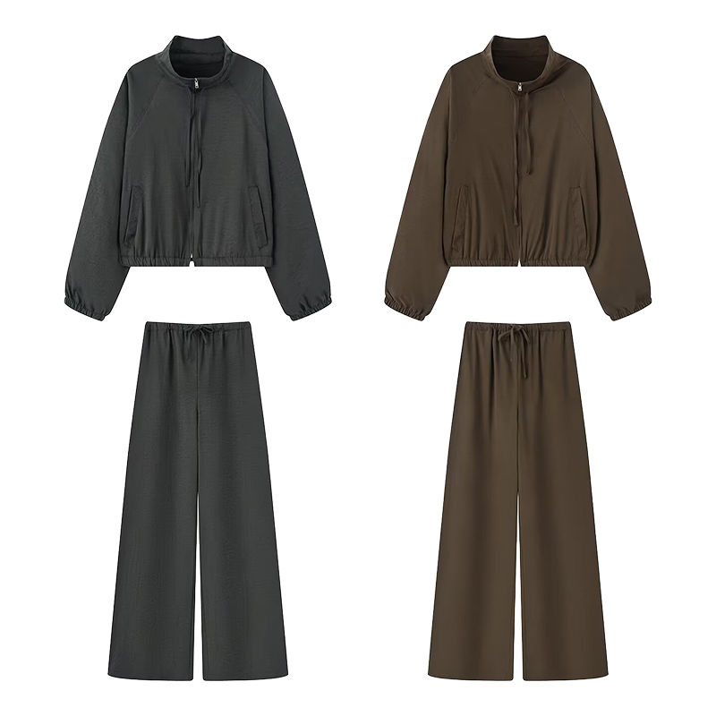Nuevo 2025 All Seasons Casual Color sólido Abrigo de manga larga y pantalones largos Conjunto de dos piezas para mujer Transpirable de secado rápido