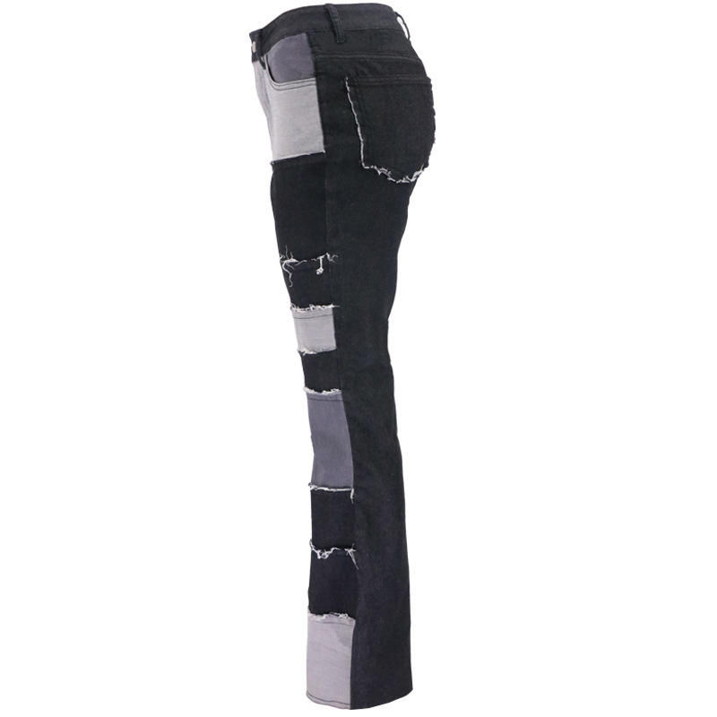 Pantalones Casuales de Mezclilla con Parches para Hombre, Estilo Urbano, Lavado Desgastado, Corte Ajustado, Cintura Media, Pierna Ancha, con Logotipo, Novedad 2025
