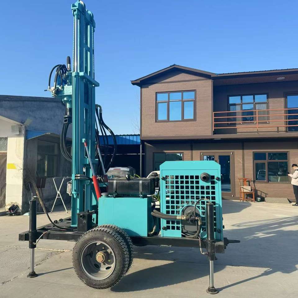 Nueva plataforma de perforación de pozos de agua con ruedas modulares diésel de 22hp, profundidad de 200m, varias brocas para romper rocas, capas de suelo