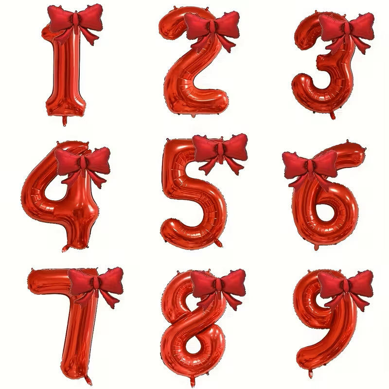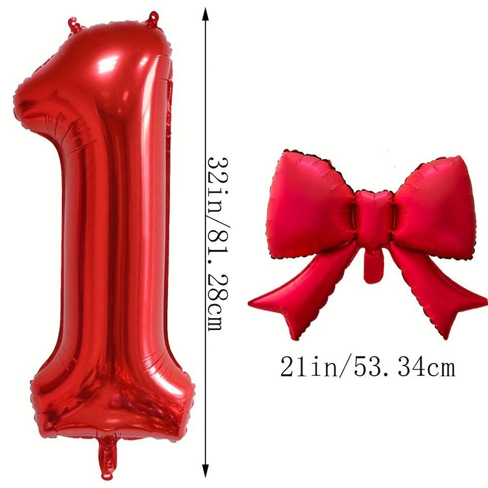 Globos de Número de Aluminio con Lazo Rojo de 32 y 40 Pulgadas, Globos de Helio para Decoración de Fiestas de Cumpleaños y Bodas