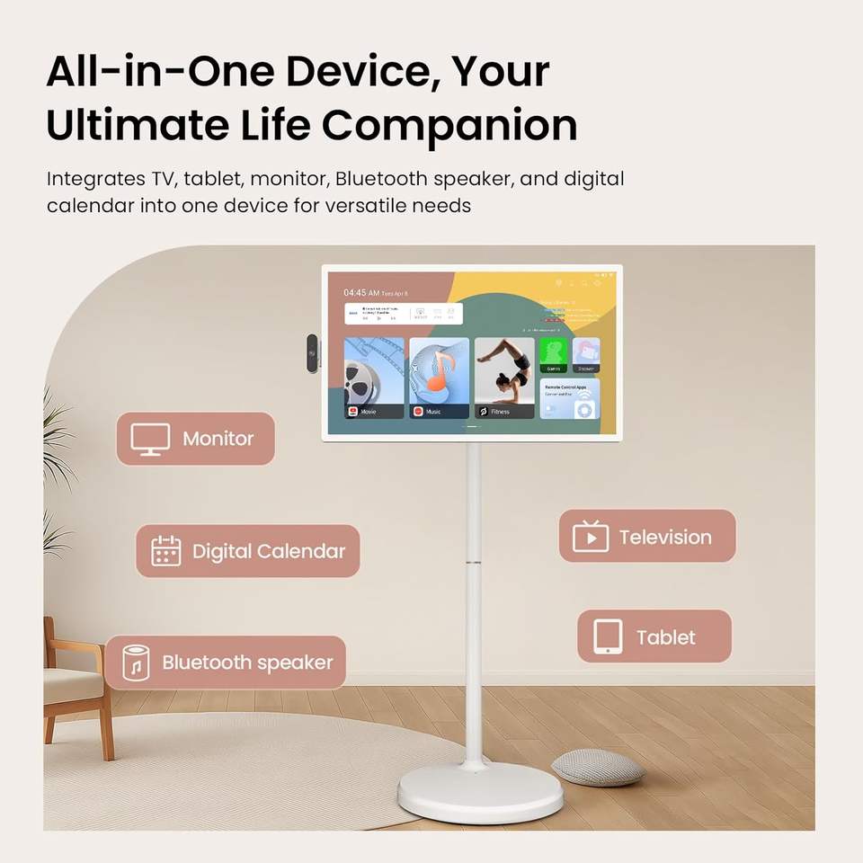 Nuevo Televisor Inteligente Portátil UHD 4K de 32'' de 2.ª Generación con 16 (8+8) GB de RAM + 256 GB + 128 GB, Android 16, Certificado EDLA, Pantalla Táctil Blanca para 5.3