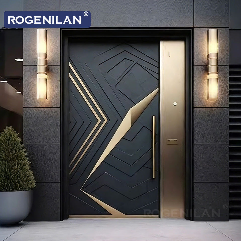 Nuevas Puertas de Aluminio Blindadas de Alta Gama para Entrada Principal de Villa, Diseño de Grano Tallado en 3D Personalizado, con Cerradura Inteligente