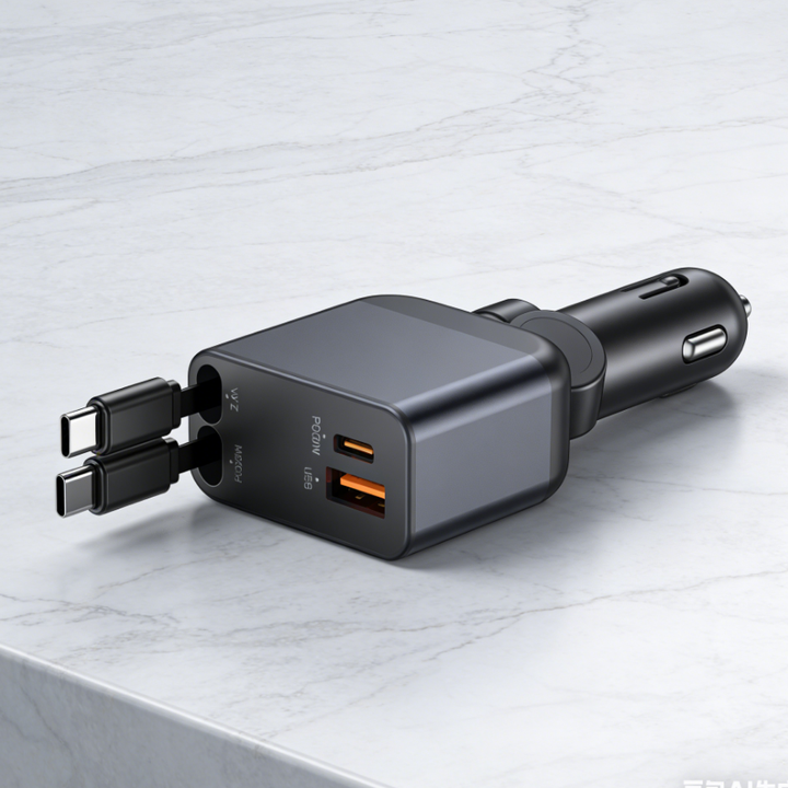 Nuevo adaptador de carga rápida multifuncional 4 en 1, cargador de coche retráctil con carga rápida 3 en 1 para el asiento trasero
