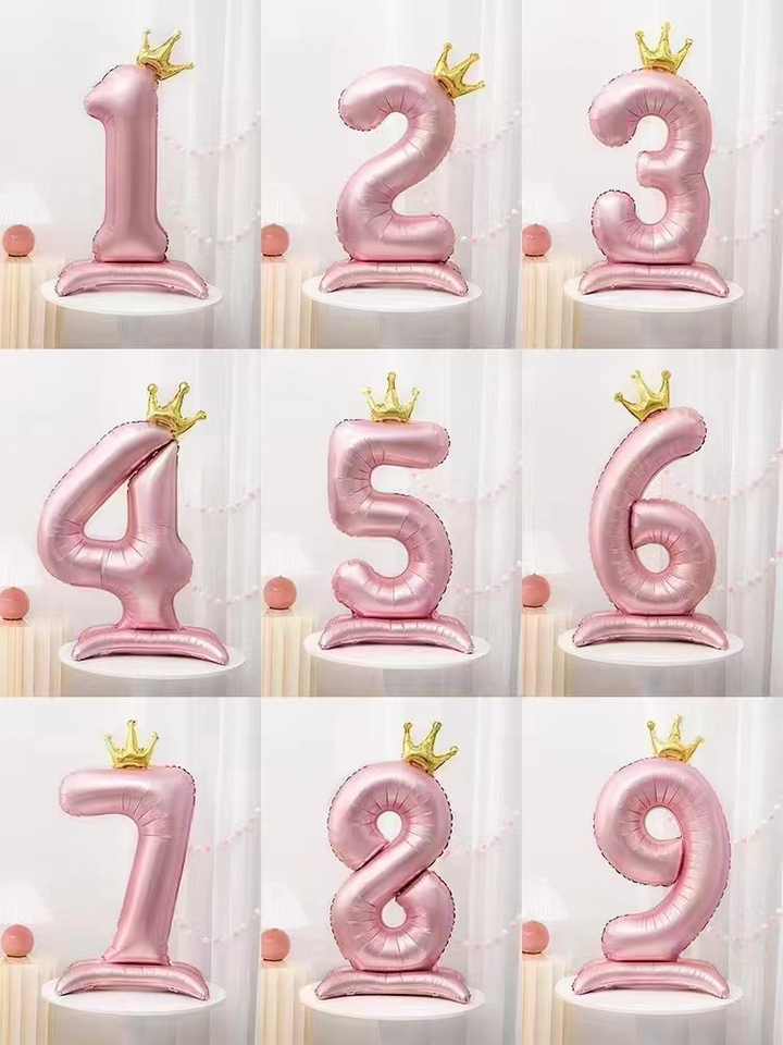 Globo de película de aluminio decoración de fiesta de cumpleaños de bebé rosa azul Digital corona de pie de 42 pulgadas