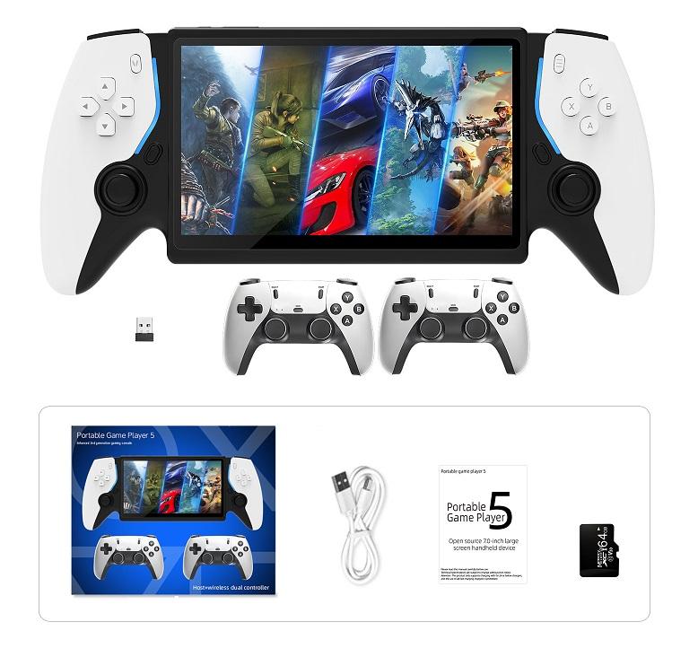 Nueva Consola de Juegos Retro Portátil de 7 Pulgadas con Doble Joystick, Sistema de Código Abierto, Más de 30 Emuladores, Luz RGB, Salida de TV y Soporte para 2 Jugadores