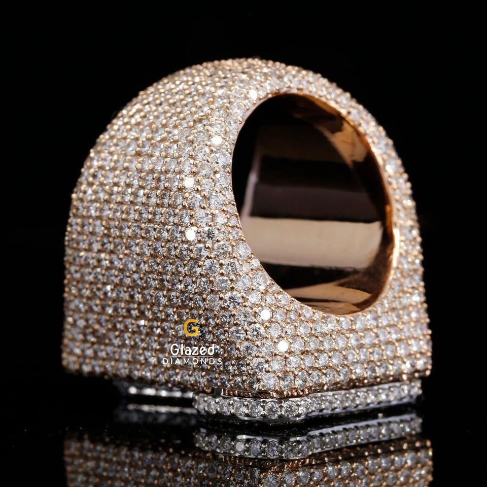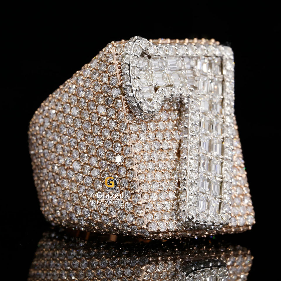 Nuevo anillo de 7 números en estilo hip hop busto hacia abajo por diamantes cultivados en laboratorio de corte brillante redondo y Baguette en oro rosa de 14kt