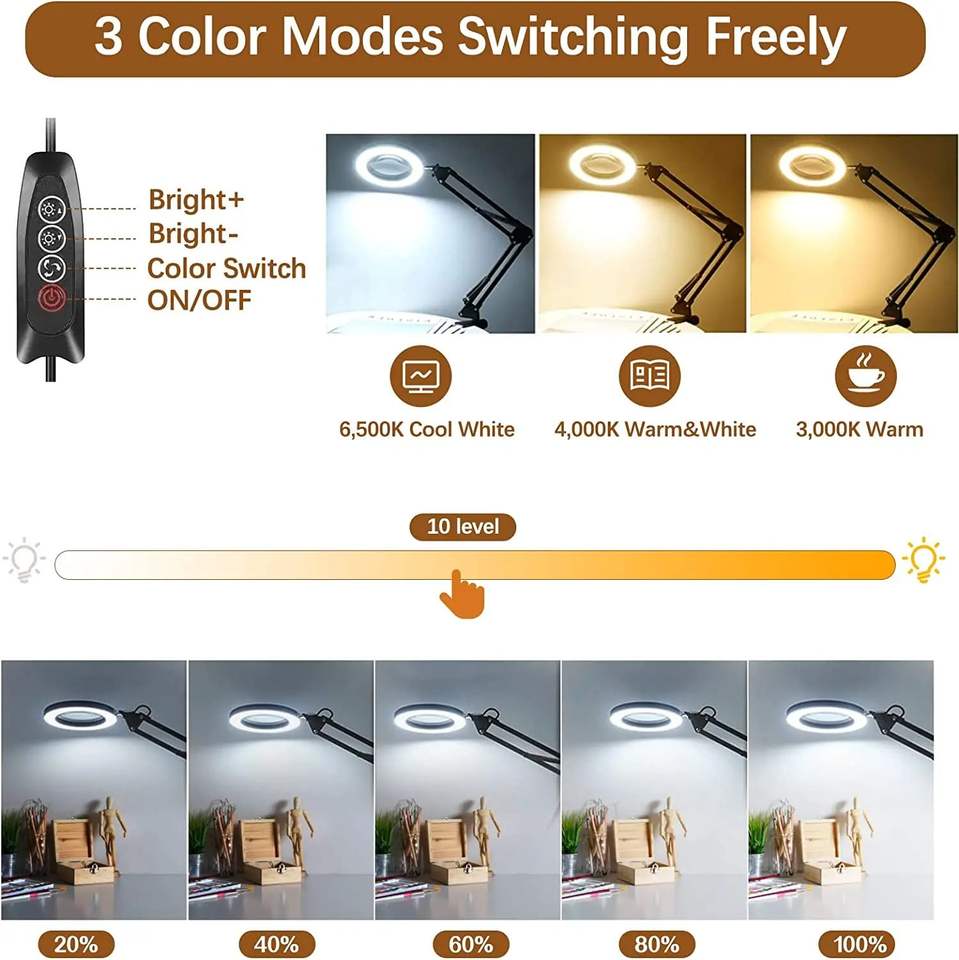 Lupa 8X/10X de 72 LED, lámpara de lectura, lupa de carga USB, luz de abrazadera para soldar, reparación de hierro, cuidado de la piel, belleza, novedad